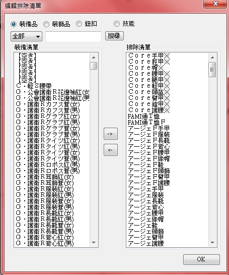 覺得不想做或是沒能力可以做的裝備可以把它丟到右邊(右邊=不搜索)